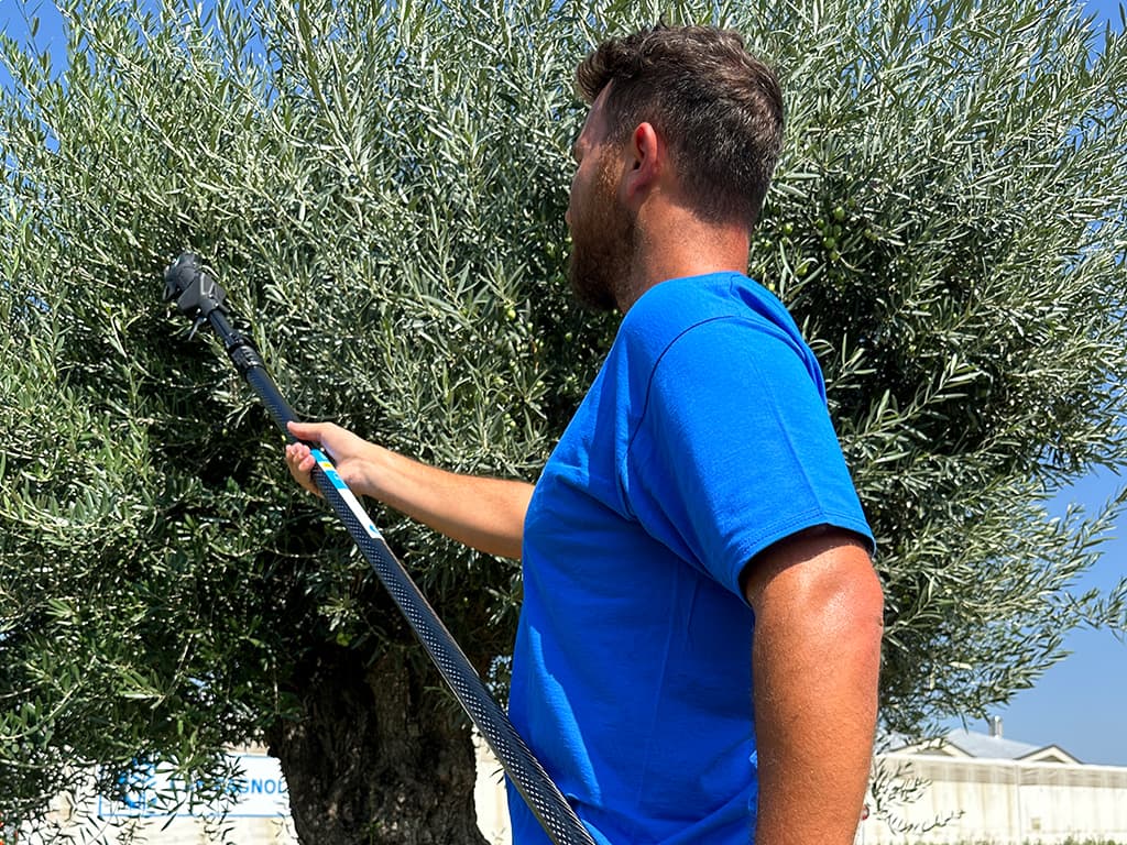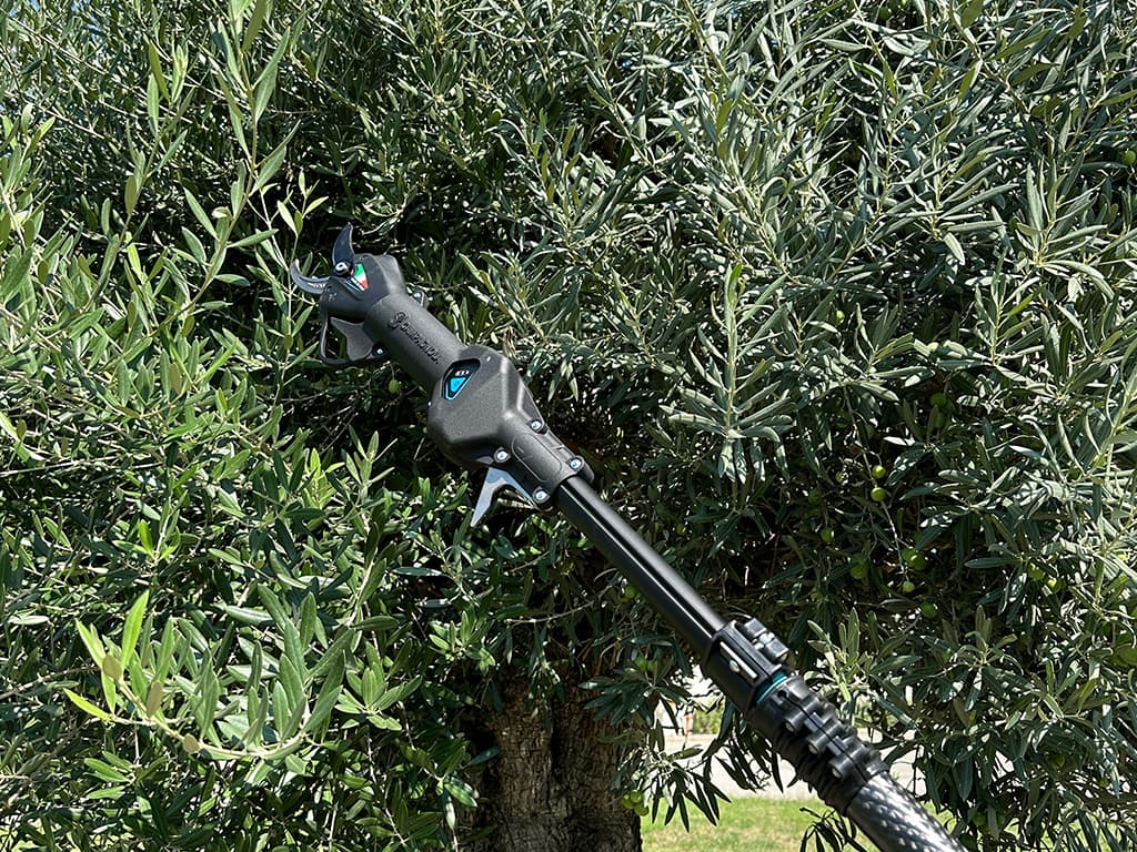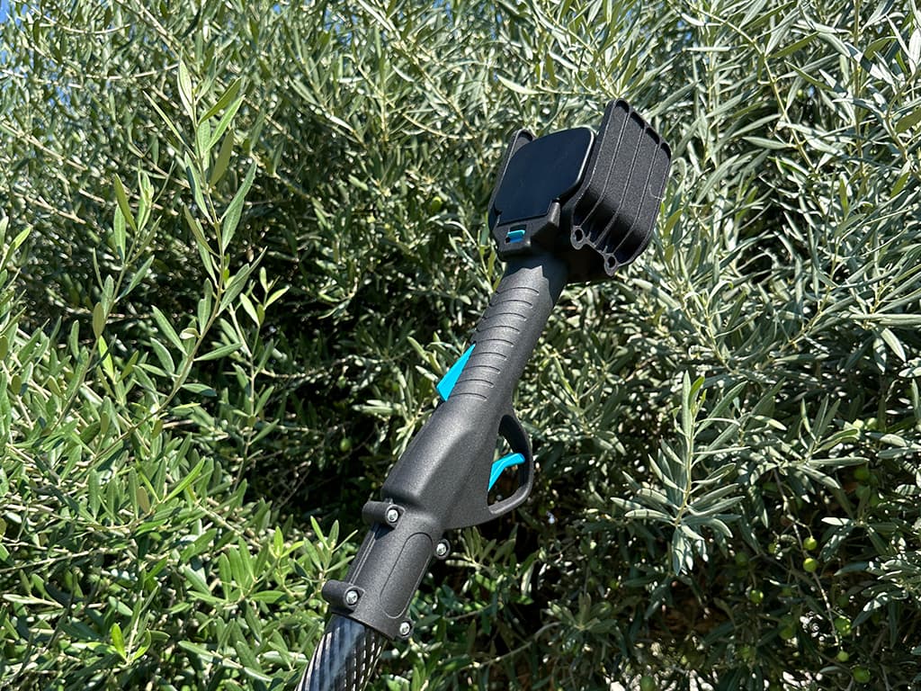 El prolongador telescópico está equipado con un práctico sistema de fijación con abrazadera para las tijeras y con un cable integrado que permite accionar el gatillo de forma remota, sencilla y segura.